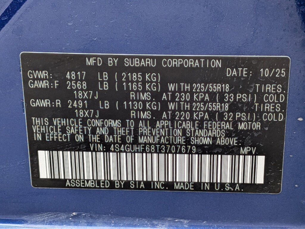 • Front tires: 225/55VR18.0